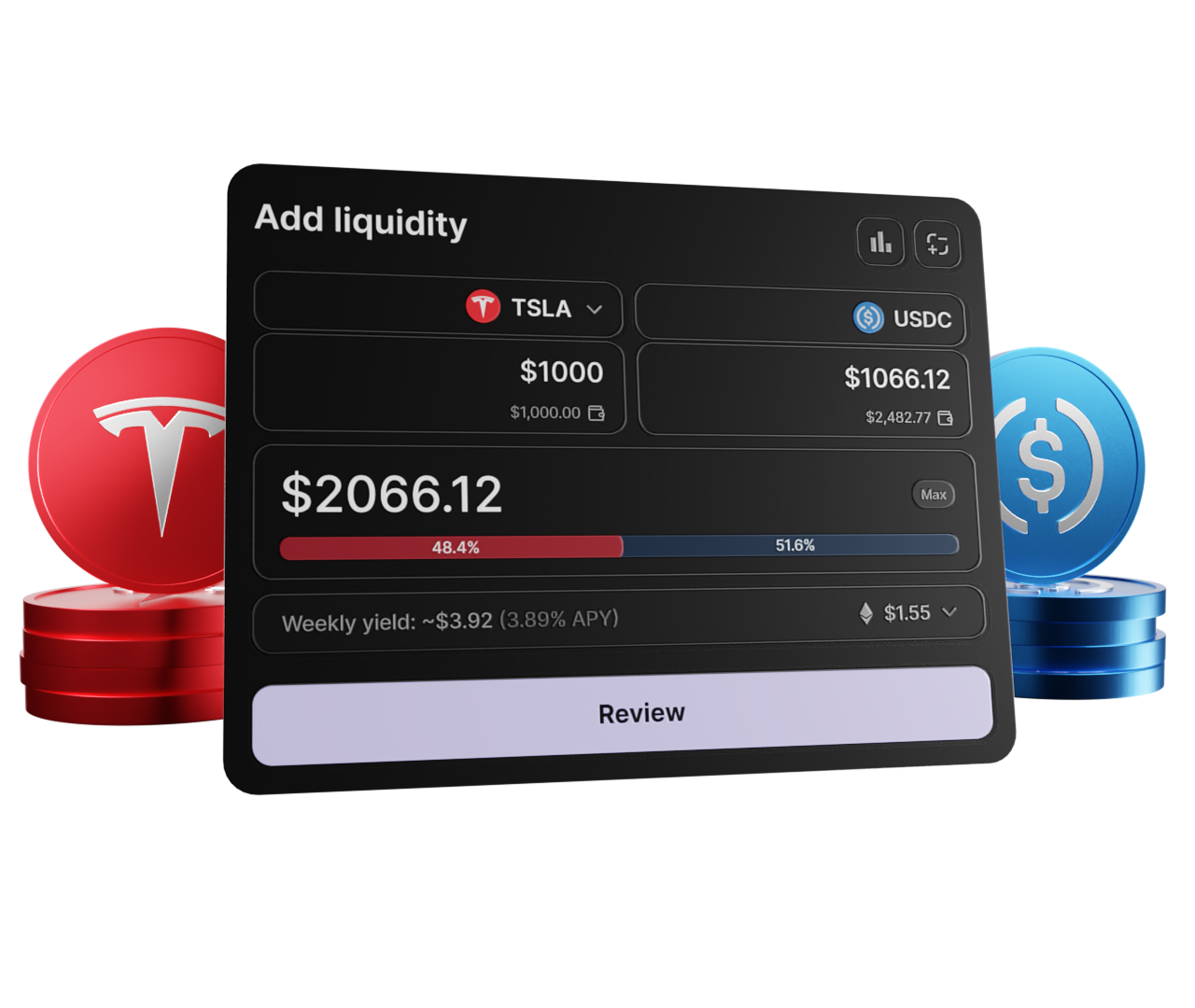 Add your stocks to liquidity pools and earn a share of fees on every swap.