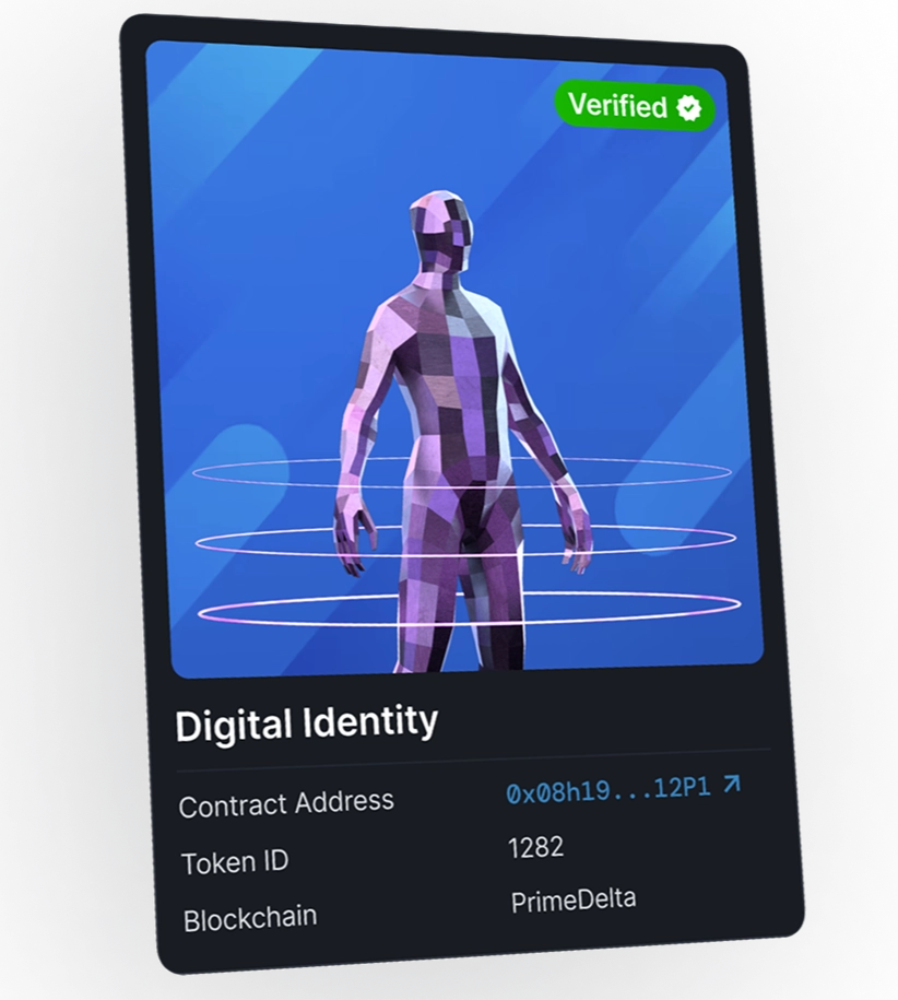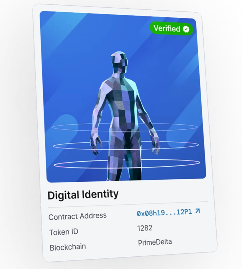 A Digital Identity is a non-transferable NFT issued by PrimeDelta to verified users. It serves as your on-chain verification, enabling you to securely interact with tokenized stocks and approved DeFi protocols, while keeping your personal data off-chain.