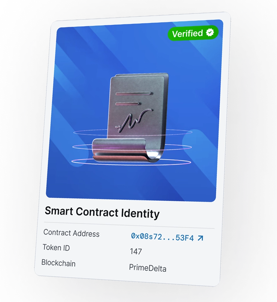 Connect your Ethereum wallet to PrimeDelta, select Verify Identity, and complete the one-time KYC process. Once approved, you can mint and claim your Digital Identity directly to your wallet.