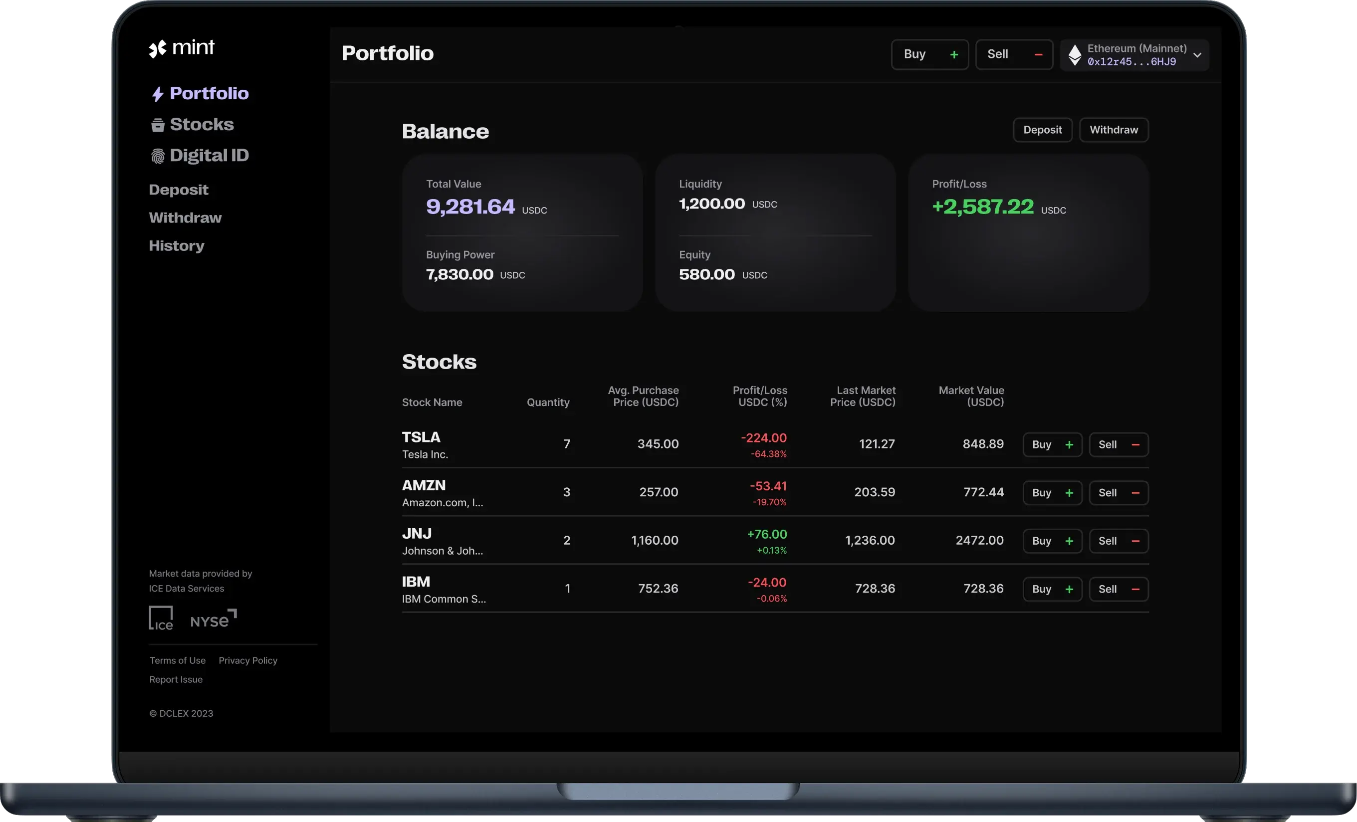 PrimeDelta Mint is an institutional-grade tokenization platform for public equities that enables authorized PrimeDelta partners to issue and redeem tokenized stocks on the Ethereum blockchain. It operates like a traditional trading platform, allowing the buying and selling of stocks, with the added ability to withdraw tokenized stocks to an Ethereum wallet or deposit them back for redemption into traditional shares.