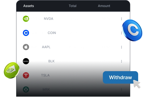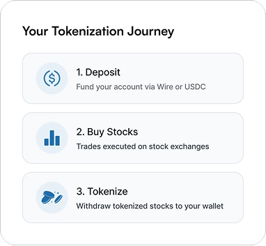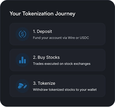 Tokenize and trade stocks directly in your platform with our developer-ready APIs—seamlessly integrate and automate.
